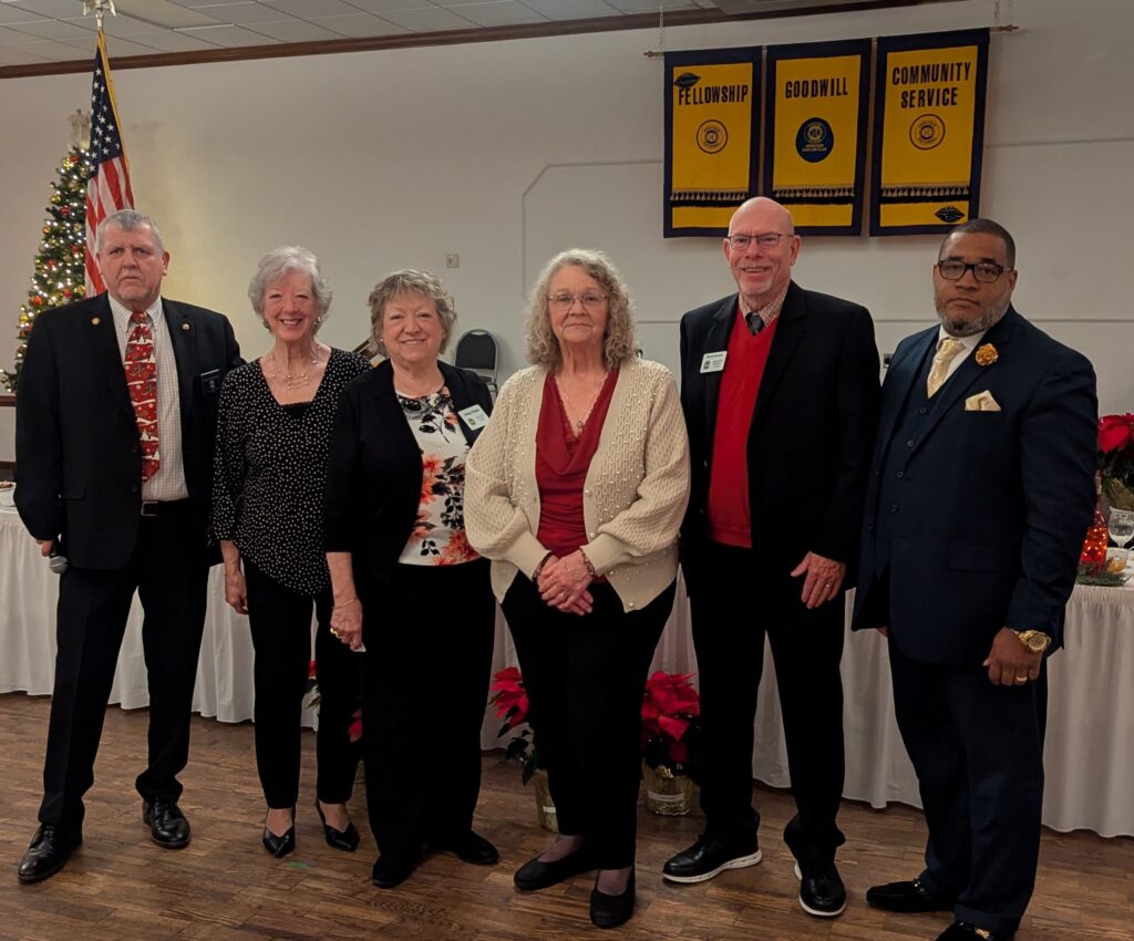 Mr. David Thompson, Ruritan National President-elect, installed Abingdon Ruritan Club 2026 Officers and 1 Five-Year Director at the Club’s December Membership Meeting & Christmas Banquet. Shown from right to left are President Antonio Donald, Vice President David Bowles, Treasurer Ann Dugas, 5-Year Director Betsy Tuttle, Secretary Dianne Woolley, and Mr. Thompson.