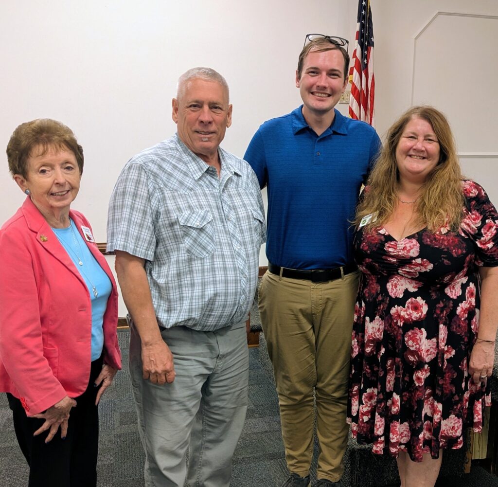 Kyle DeGood spoke at the September Abingdon Ruritan Club Membership Meeting. Kyle is Founder and current Executive Director of the DeGood Foundation and the home of Dolly Parton’s Imagination Library of the Virginia Peninsula. The Abingdon Club supports this foundation with a donation each year. Shown in the photograph is Past President Mary Lou Privott, President Dean Marzocca, Kyle DeGood, and Club member Marsha Weatherwax.