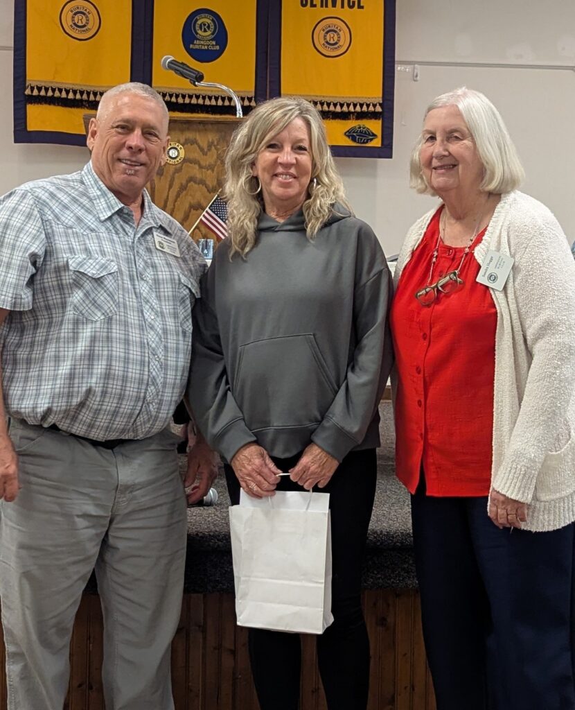 At the September Meeting of the Abingdon Ruritan Club, President Dean initiated new member Kelly Richards shown here with the President and Kelly’s sponsor Sandra Hogge.
