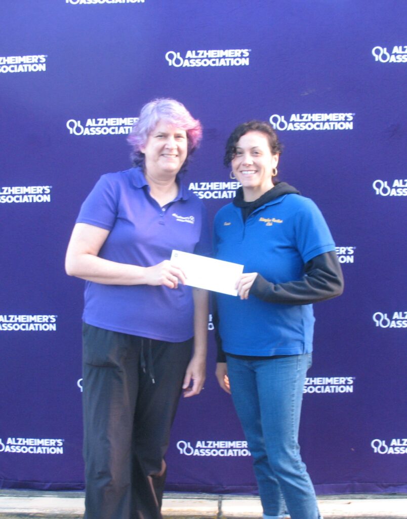 Raven Cash, Chairman of the Abingdon Ruritan Club Public Service Committee is shown presenting a $1000 check to support ending Alzheimer’s to Barbara Monteith, Director of the Gloucester Chapter of Alzheimer’s. The presentation was made at the End Alzheimer’s Walk held Saturday, October 4, 2025. Abingdon Ruritan Club members who volunteered their time on October 4th at the October 4th Walk to end Alzheimer’s are shown below.
